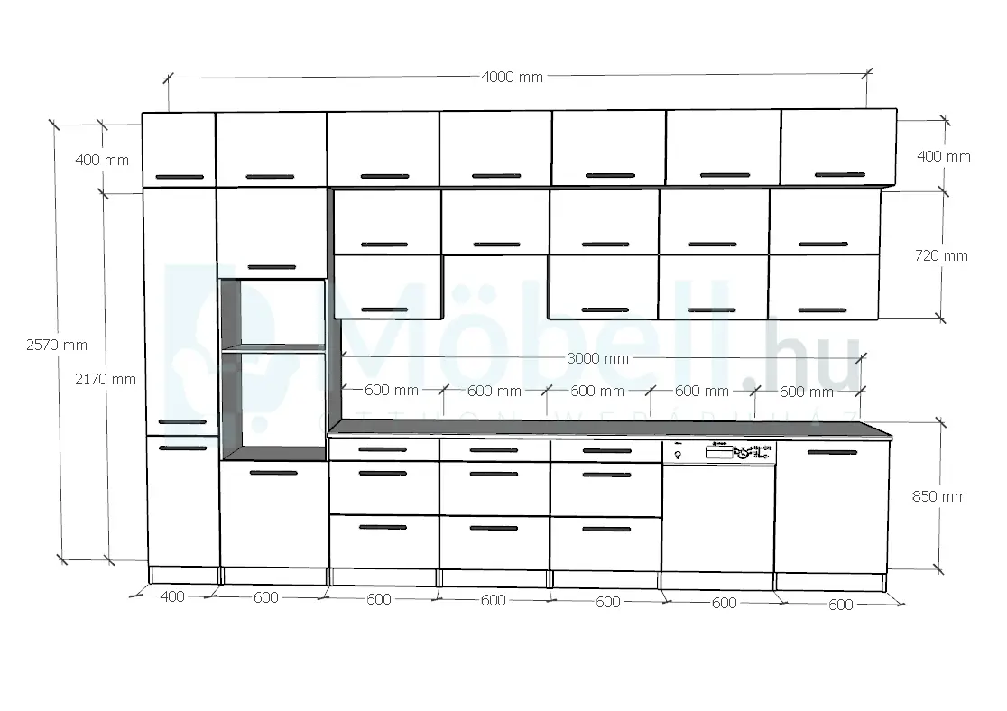 Konyhabútor hossza:        400 cm