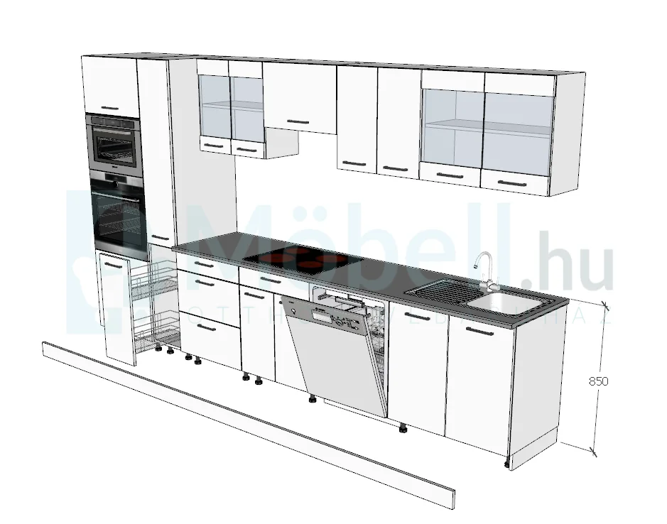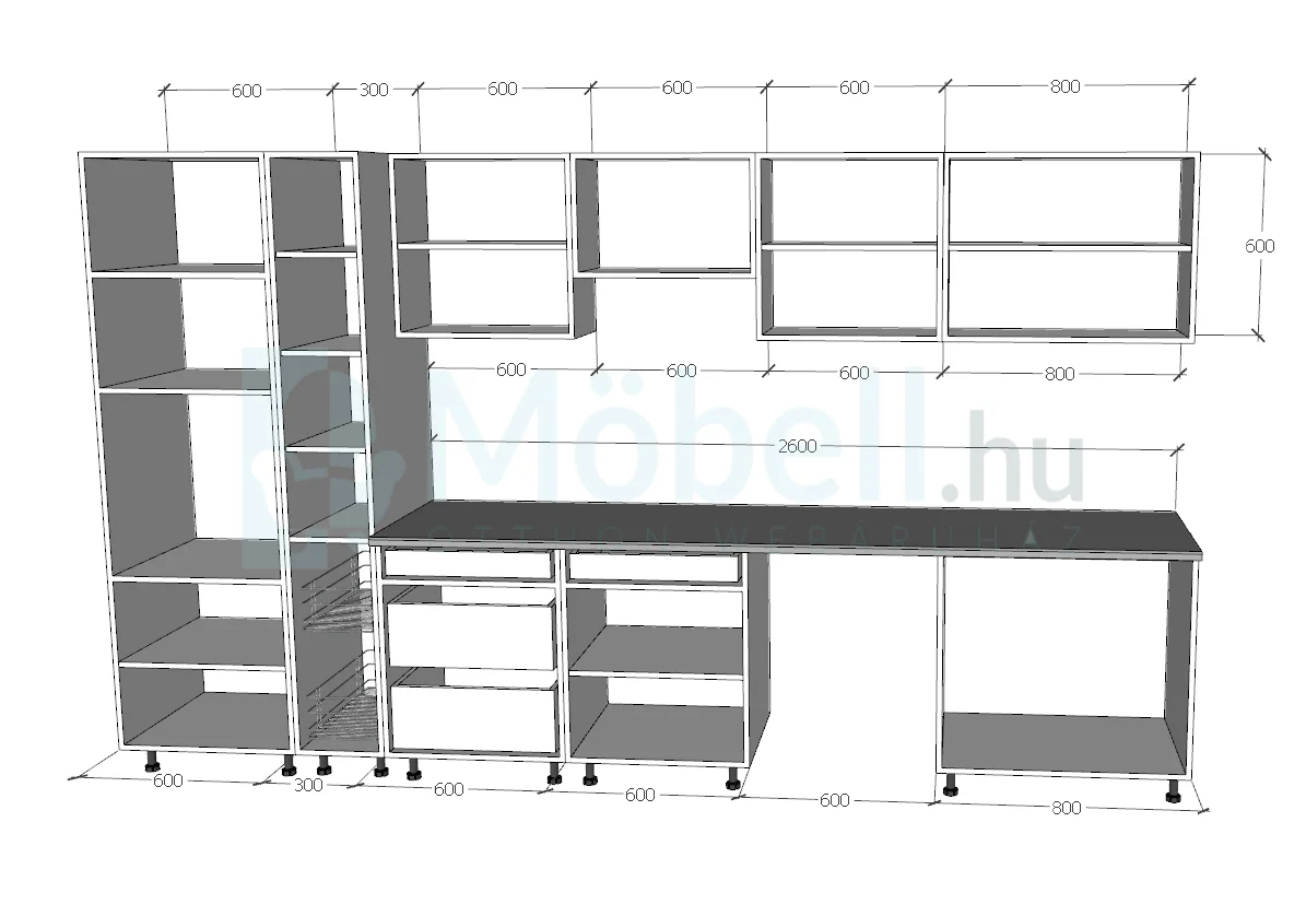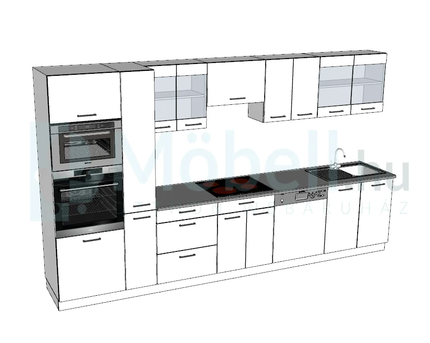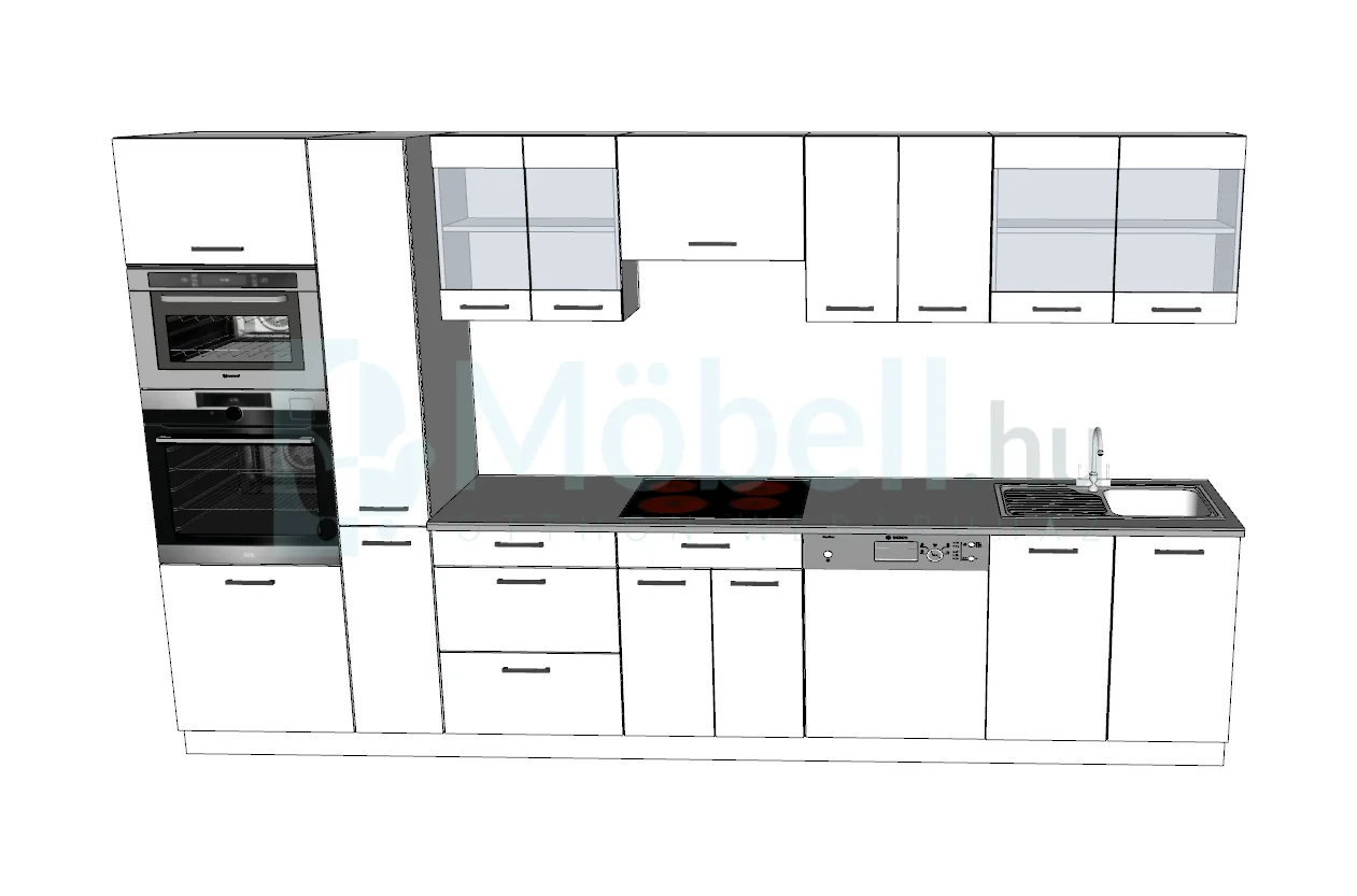 Az elemek mérete a termékleírásnál található. Amennyiben a konyhasort ki szeretné még pluszban elemekkel egészíteni, az itt található elem kínálatból választhat.