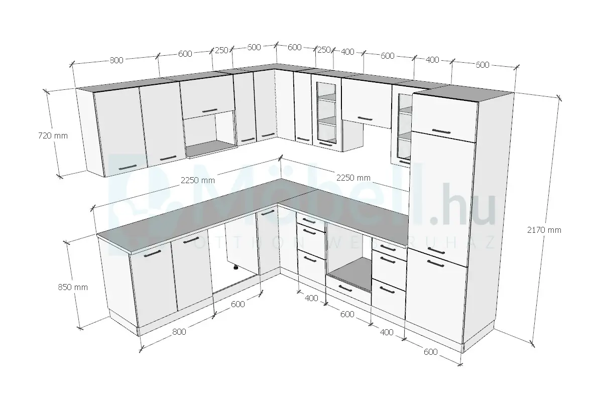 Blokk konyha vagy Egyedi konyhabútor: Termékeink alapból Blokk konyhabútor összeállításúak. Amennyiben a termékkép és a hozzá tartozó rajzokon található méretek megfelelnek úgy azt egyszerűen megvásárolhatja egy kattintással. Van viszont olyan lehetőség is, hogy plusz kiegészítő elemet hozzátesz még az alap konyhabútor blokkhoz ezáltal növeli az alap konyhabútor nagyságát. Amennyiben semmiképp nem megfelelő az általunk kínált alap Blokk konyhabútor, de a konyha tetszik a vásárlónak, úgy egyedi konyhabútor is összeállíthat a termékoldalon az elemekre kattintva. Ilyenkor az alap Blokk konyhát nem kell kosárba helyezni.