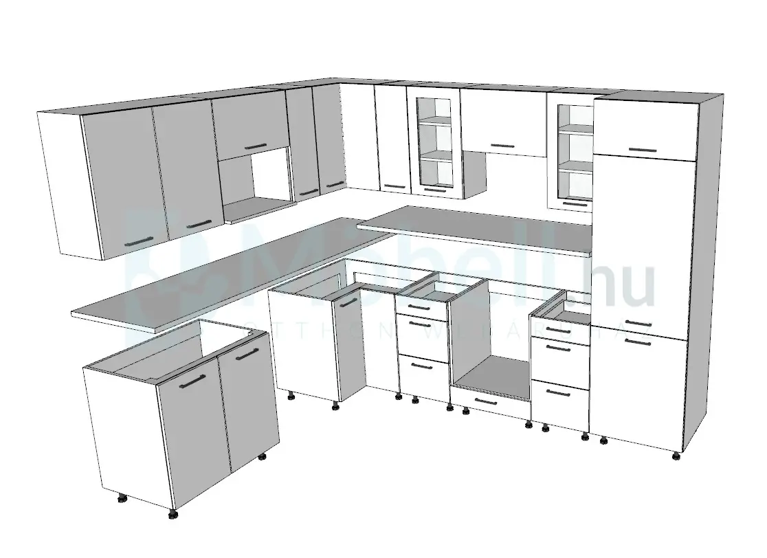 Konyhabútoraink mindegyike elemek sokaságából áll. Tévhit, amikor a vásárló úgy gondolja, hogy a kiválasztott konyhabútor egy egész és hogy egyben szállítjuk ki a terméket a lakáshoz (sajnos mindennapos). A konyhabútor garnitúra sok elem együttese, amit a lakásban kell összeszereltetni szakember segítségével.