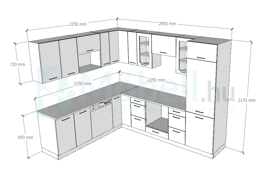 Elemek összeszerelése: Áruházunk szép lassan kivezette a lapraszerelt termékek forgalmazását, ezért termékeink 100%-a összeszerelt állapotú. Hogy jobban megértsük, nem a konyhabútor van összeszerelve egybe, hanem egy elem van kompletten össze szerelve. A konyhabútor elemei hagyományos köldökcsapos illesztéssel vannak egymáshoz illesztve. Ezek rejtett illesztések, így a konyhabútor esztétikus megjelenésű, csavarozási nyomok vagy kupakok nem találhatóak a bútorokon.