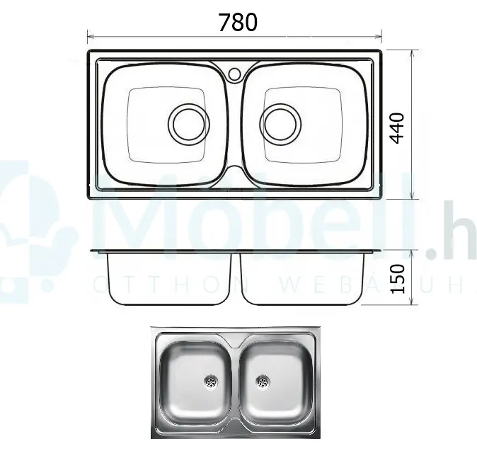 Munkalap kivágása: Ha a munkalapba szeretné beépíteni a mosogató tálcát, a munkalap kivágását a vevőnek kell a helyszínen beszerelés után elvégezni.