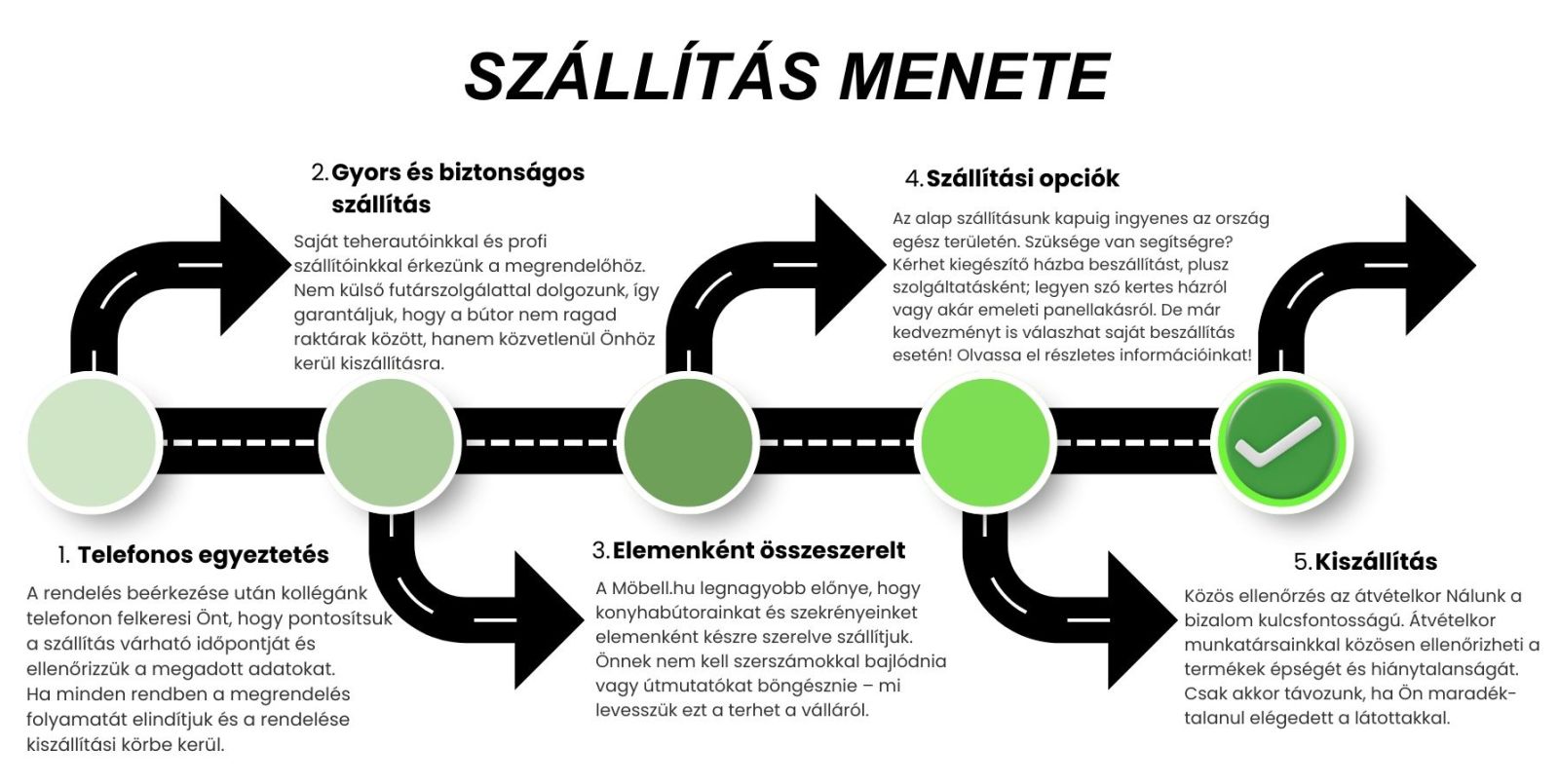 Áruházunk a többi webshoppal ellentétben nagyon sok információt közöl a termékről egy oldalon, amit mobiltelefonon nehézkes áttekinteni. Mobiltelefonon érdemes csak nézelődni és ismerkedni áruházunk termékeivel, vásárláshoz javasoljuk azonban az asztali számítógép használatát. Nézzen szét oldalunkon és válaszon termékeink közül. A termékleírások minden terméknél egyedileg az aktuális termékre vannak elkészítve. Kérjük figyelmesen olvassa el a leírást és a méretek figyelembevételével válasszon ki terméket. A kiválasztott termék több darabból is állhat, melynek méretei eltérőek lehetnek. Áruházunk a termékek házba való beszállításának lehetőségeit nem mérlegeli. A vásárló feladata átgondolni, hogy a kiválasztott termék beszállítható e a lakásba. Kiegészítőket az alapárak nem tartalmaznak, de azon termékek, amelyek rendelkeznek kiegészítő vásárlási opcióval, érdemes hozzá vásárolni, a komplexitás és konyhabútorának életidejének növelése céljából. Ha a terméket a kosárba helyezte, kérjük még egyszer fussa át a megrendelés listáját és az összesítést, majd töltse ki a számlázáshoz szükséges adatokat. A kosár oldalon található Kiszállítás, Házba szállítás opciók közül válassza ki a megfelelőt. Cégünk csak házhoz szállítást vállal, amit ingyenesen biztosítunk vásárlóinknak, de a lakásba beszállítás plusz költségbe kerül. Az adatok megadása és ellenőrzése után a Megjegyzés menüben megadhatja egyéni kéréseit, egyéni igényeit mely felől munkatársaink felveszik Önnel a kapcsolatot. A megrendelés véglegesítése után a webáruház egy automatikus e-mailt küld az Ön megrendeléséről. Önnek ezek után nincs más dolga, mint várni a telefonos visszaigazolást kollégáinktól a vásárlás véglegesítéséhez.