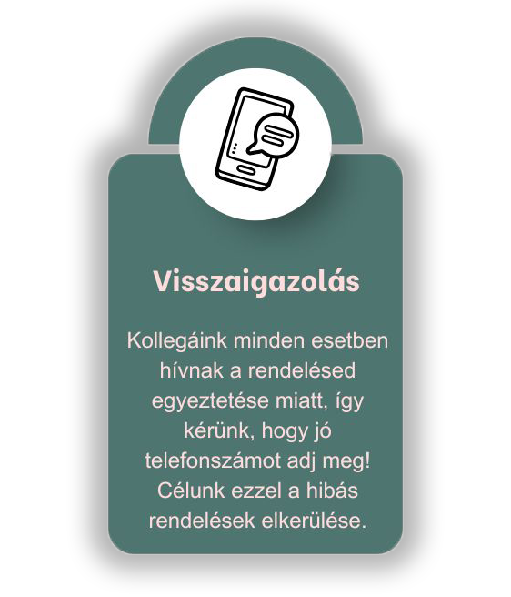 Megrendelése akkor lép életbe, ha online megrendelését e-mailben vagy telefonon is visszaigazoljuk (max. 48 órán belül). Amennyiben a telefonos adat és megrendelés egyeztetés nem érkezik meg 48 órán belül (kivéve hosszú hétvége vagy ünnep), úgy Neked, mint fogyasztónak a megrendelésből fakadó ajánlati kötöttséged megszűnik. Az áruházi rendszer által küldött automata megrendelés-másolat nem egyenértékű a fent említett telefonos visszaigazolással. A szerződés, Webáruházban történő megrendelés esetén a rendelés visszaigazolásakor (megerősítés után) jön létre. Szerződés-megrendelés leadása telefonon nem adható le áruházunk felé, megrendelést kizárólag a webshopon keresztül tudunk csak fogadni. A megrendelés telefonos, szóbeli egyeztetést követően minősül valós megrendelésnek. A szóbeli visszaigazolás kizárólag munkanapokon és munkaidőben történhet 8:00 – 16:00 közötti időintervallumban.